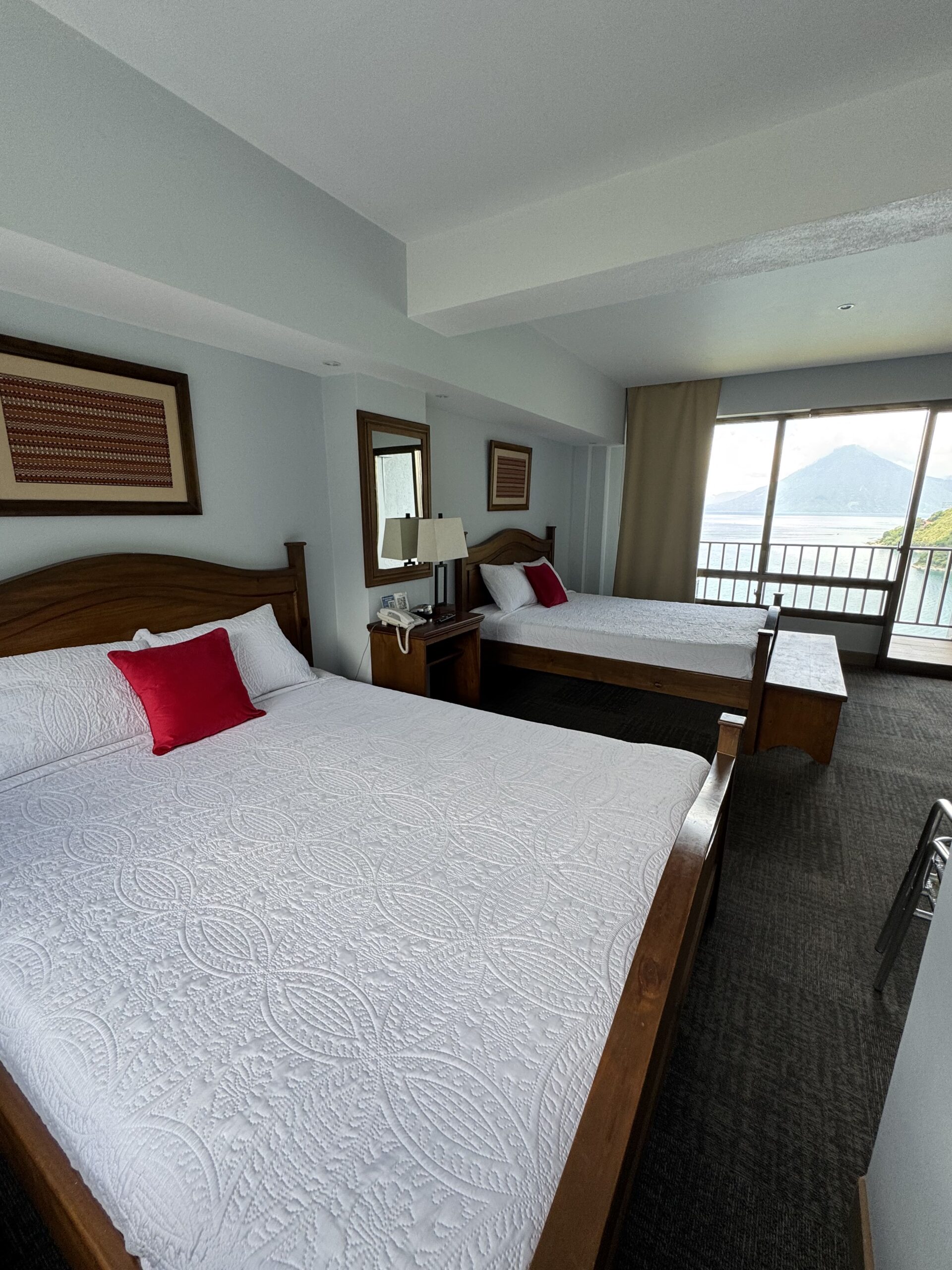 Habitación Doble Habitación Doble 2 Camas QueenBaño privado con Tina o Ducha y Agua calienteTV con cableBalcón con vista al Lago de AtitlánWifiMini refri con servicio de Snack bajo cargo adicionalSecadora de CabelloTeléfonoHabitación alfombradaRoom Service bajo cargo adicionalCapacidad máxima (2 adultos y 2 niños de 10 años) ¿Te gustaria disfrutar un tiempo en la riviera? RESERVAR