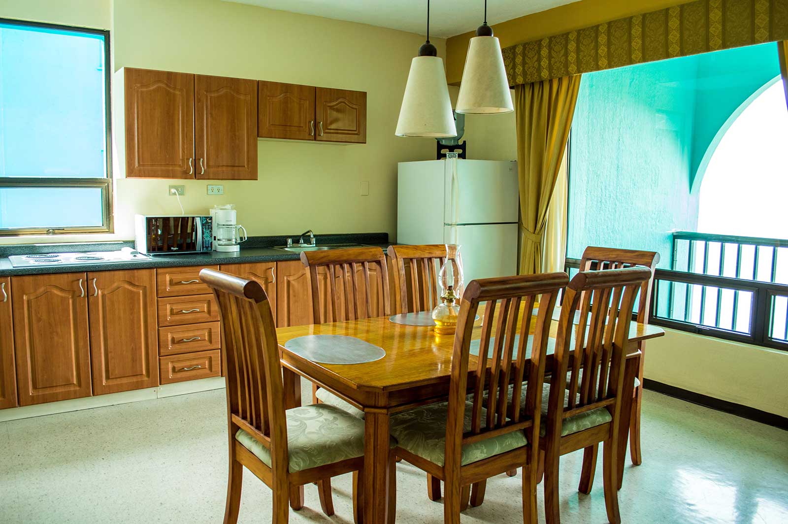 Con una cama queen en la habitación principal y dos camas queen en la secundaria, esta suite ofrece espacio ideal para familias o grupos. Disfruta de baños con tina o ducha y agua caliente, sala privada con TV por cable, wifi y una cocina equipada con comedor para 6 personas. El balcón, accesible desde la sala y la habitación principal, regala una vista inigualable al Lago de Atitlán.